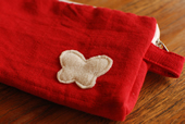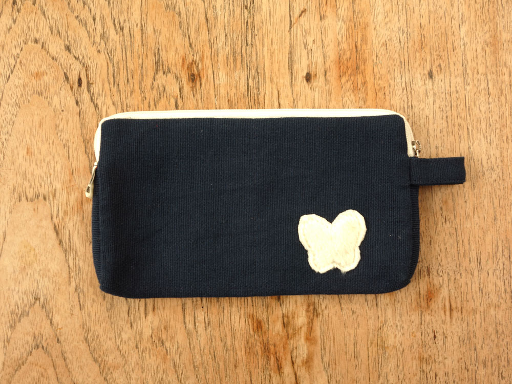 ■財布ポーチ本命の革のお財布とは別に、伝票やレシート、通帳、印鑑等を入れておくケースがあれば便利。 お財布にお金以外のものがたくさん入っているの、嫌ですよね。 こうして2つ目のお財布の様なポーチの様なものが便利。 こちらも人気のエプロンの生地、そしてカラーバリエーションで作ってみました。 シンプル過ぎない様に毛足の短いうさぎにも使っているファーで 「ちょうちょ」のアップリケをつけてもっとsisiらしく仕上げてみました。