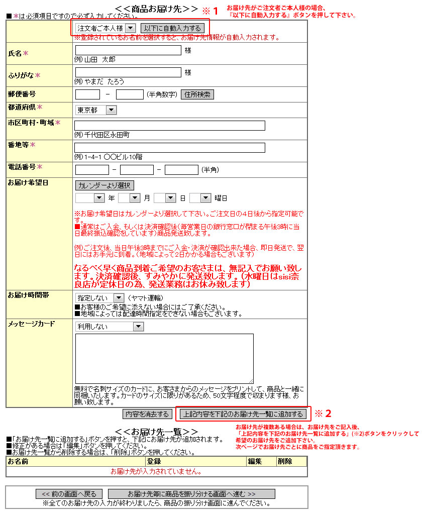 | 5.各商品のお届け先を指定(複数配送の場合) |